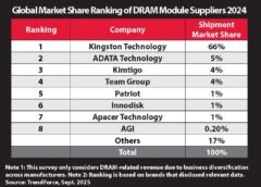 Kingston Technology Remains Top DRAM Module Supplier for 2024