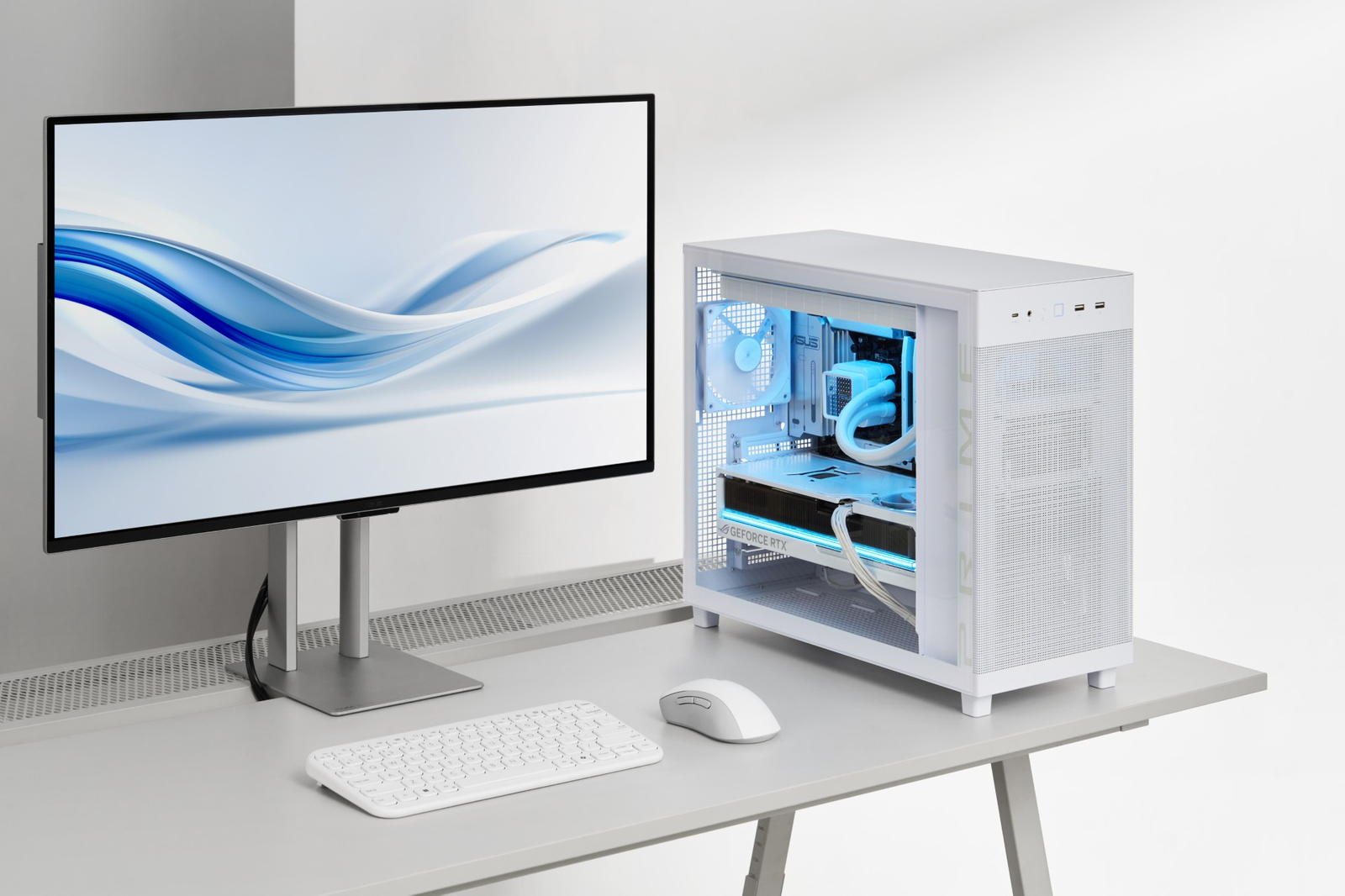 The ASUS Prime AP303 uses every square inch smartly, providing room for ATX PSUs up to 180mm long and graphics cards up to 360mm long. The case’s graphics card bracket is built to support the heft of GeForce RTX 50 Series graphics cards measuring between 310mm to 360mm long — up to and including heavyweight cards like the ROG Astral GeForce RTX 5090. This ensures long-term hardware stability — even for graphics cards with large heatsinks for premium thermal performance. In addition, the Prime AP303 ensures stable power via a UL-certified internal power cable, which delivers 15 amps of current to the front-mounted power supply. For easy cable management, the AP303 also offers a 34mm-wide compartment behind the motherboard.