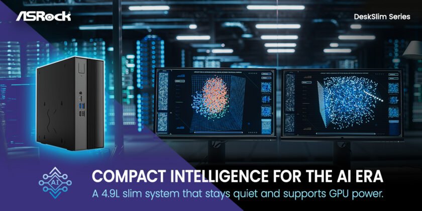 ASRock showcases its Mini PC portfolio with the debut of the DeskSlim Series, introducing the DeskSlim B760 and DeskSlim X600 as two ultra-compact 4.9-liter AI-ready workstations. The DeskSlim Series is positioned as a mini workstation-class Mini PC, supporting CPUs up to 120W and offering PCIe 5.0 x16 support for low-profile dual-slot discrete GPUs, along with four DDR5 memory slots and Energy Star 9.0 efficiency, and complies with major global energy efficiency standards, including California Energy Commission (CEC) energy efficiency requirements, Japan’s Top Runner Program, EU ErP Lot 3 requirements, and China national energy efficiency standards (CNIS). This design makes DeskSlim well suited for AI inference, content creation, smart retail, CAD and visualization, and multi-display deployments.