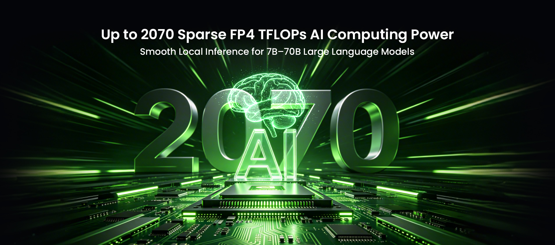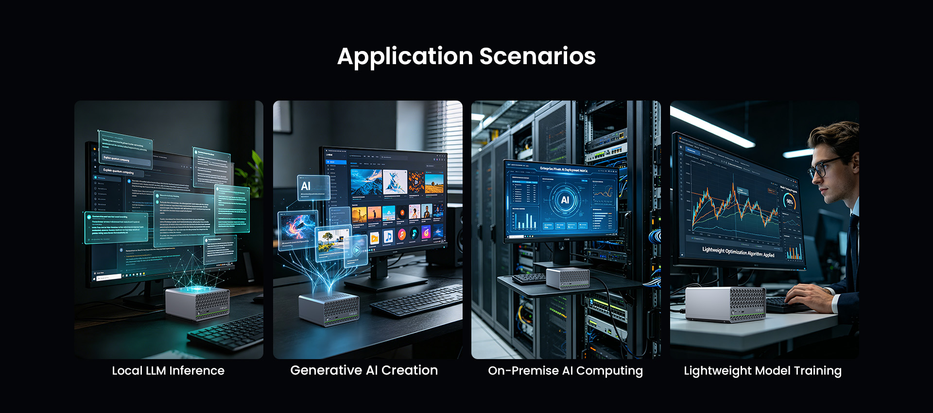 The workstation natively supports smooth local inference for 7B–70B parameter large language models, making private, low-latency AI accessible for businesses and creators.